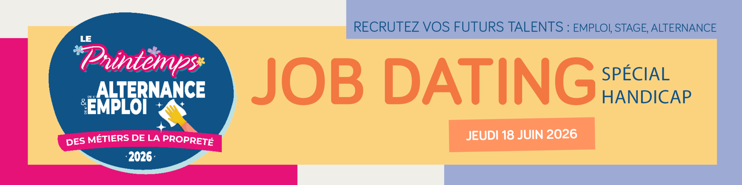 La FEP, les chambres régionales et le Fare Propreté organisent cette année le Printemps de l’emploi et de l’Alternance sur l’ensemble du territoire. La FEP Grand Est et le Fare Propreté en région vous propose un job dating spécial handicap à Schiltigheim.